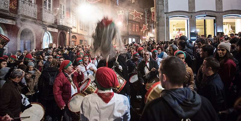 El 29 de noviembre tiene lugar el mítico Pinheiro, procesión que anuncia el inicio de las fiestas estudiantiles, que se prolongarán durante una semana.Esta es la noche más larga del año en Guimarães, con los guimarãeses –jóvenes y mayores– enfrentando estoicamente el frío y la lluvia en el desfile que recorre la ciudad, acompañando a un árbol al ritmo de tambores y trampas.Una vez inauguradas las fiestas con tan pagana procesión, siguieron las Rouvalheiras (en fecha nunca anunciada), las Novenas, las Maçãzinhas, las Danzas de São Nicolau, las Posses y el Pregão, un discurso satírico mordaz, en el buen espíritu de Gil Vicente, recitado en voz muy alta.